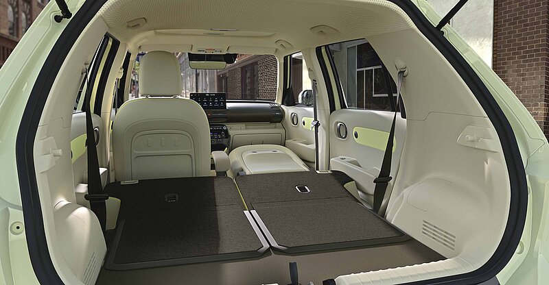 Im neuen Hyundai INSTER sind alle Sitze umklappbar (für Fahrer- und Beifahrersitz serienmäßig ab Trend verfügbar): Perfekt für ein Nickerchen zwischendurch oder das Transportieren von sperrigen Gegenständen. Außerdem kannst du die Rücksitze um bis zu 16 cm verschieben (serienmäßig ab Trend verfügbar) – für mehr Beinfreiheit oder einen größeren Kofferraum.