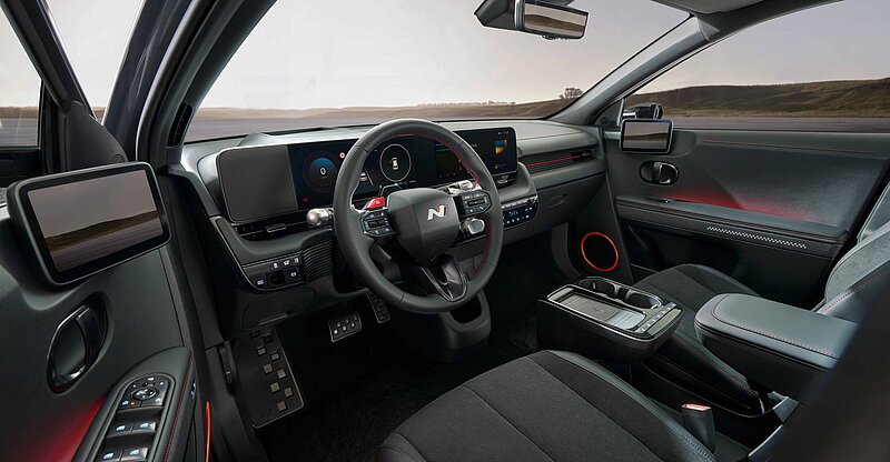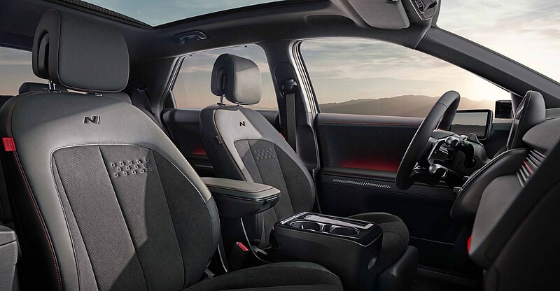 In diesem exklusiven Cockpit sind auf den ersten Blick die motorsportlichen Wurzeln unserer N Line zu erkennen: Vom Startknopf über die gebrandeten Sport-Komfortsitze bis zu den Lüftungsdüsen ist das High-Performance-Feeling deutlich spürbar.