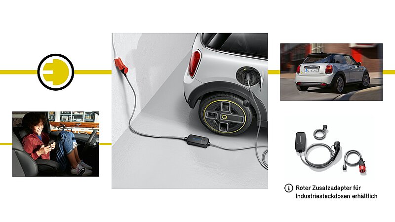 Sie haben eine Industriesteckdose in der Garage oder planen die Anschaffung einer NewMotion Ladestation? Mit beiden Varianten ist Ihr MINI bereits nach 2,5 Stunden fast vollständig geladen. Für den Anschluss an die Industriesteckdose brauchen Sie nur einen zusätzlichen Adapter, den Ihnen Ihr MINI Partner gerne für Sie bestellt oder den Sie nachträglich im Shop erwerben können.
